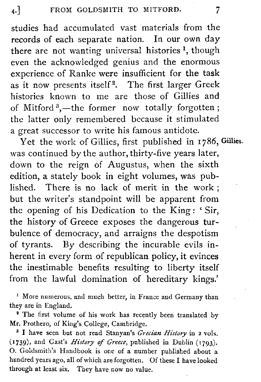 [vii:1] Probably, Busolt adds in the sequel, the use of iron weapons by the Dorian invaders may have been one cause of their victory. But it seems to me mainly to have been the victory of infantry over cavalry, and thus a very early type of the decisive day at Orchomenus, when the Spanish infantry of the Grand Catalan Company destroyed Guy de la Roche and his Frankish knights, and seized the country as their spoil.