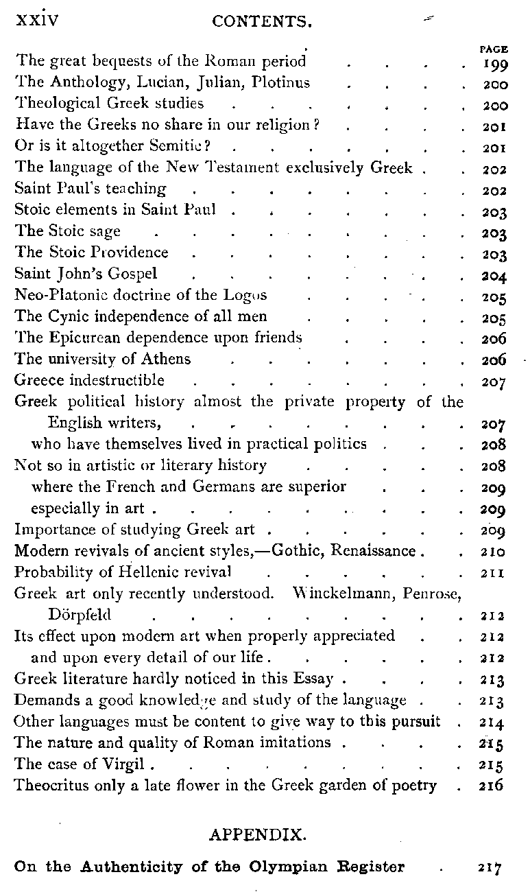 § 90. It is indeed difficult to overrate the amount and the variety of the many hidden threads that unite our modern culture to that of ancient Greece, not to speak of the conscious return of our own century to the golden age of Hellenic life as the only human epoch in art, literature, and eloquence which ever approached perfection. As the Greek language has lasted in that wonderful country in spite of long domination by Romans, of huge invasion by Celts and Slavs, of feudal occupation by Frankish knights, of raid and rapine by Catalans and Venetians, ending with the cruel tyranny of the Turk, so the Greek spirit has lasted through all manner of metamorphose and modification, till the return wave has in our day made it the highest aspiration of our worldly perfection.