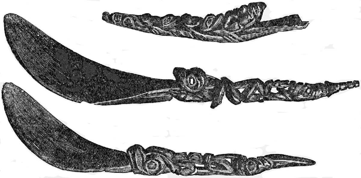 “The ornamentation of the under lip of a female (now almost obsolete) marked an epoch in her life. As long as she remained single she wore this; but, as soon as she was married, a larger piece of wood or bone was pressed into the opening, and annually replaced by a still larger one, the inner side being hollowed out. It was, of course, impossible for these individuals to close their mouths, the under lip protruding, distended by the disk of wood or bone.