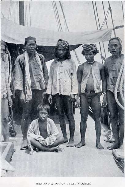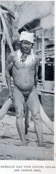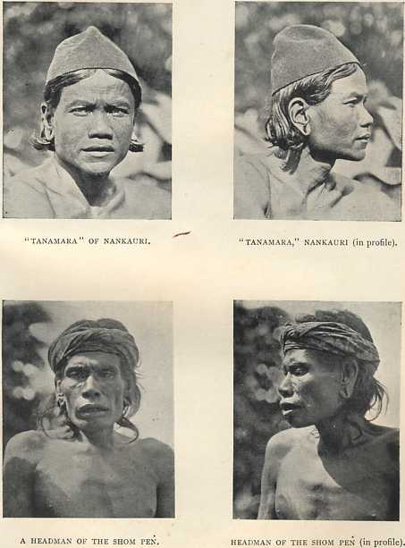 [212] In the matter of names, a Kar Nicobarese tries to please everyone with whom he is acquainted. There is often his own native appellation, an English one, another by which he is known to the Indian traders, and a fourth under which he does business with the Burmese!