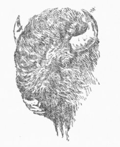 In ancient times the Pawnees had no horses and went hunting on foot. Arrow heads were made of flint or deer horns. Until a recent date, the old stone arrow heads were believed to have supernatural power. White traders introduced those made of iron. The warriors were skillful marksmen and the bow and arrow remained the favorite weapon as long as there were buffaloes to kill. The endurance of the Pawnees, when hunting, was remarkable. In the first place, scouts were sent out to look up a herd. Having discovered one, they returned with information regarding its location. The hunters, disguised as wolves, advanced in a body until within sight, then scattered, forming a large circle, which gradually became less, as they closed in upon the animals. When near enough to[Pg 38] begin the attack, a man shouted to attract attention, and the startled buffaloes ran, some one way and some another. Wherever they turned, an Indian, casting off his wolf skin, sprang up and drove them back. At length, the Pawnees, yelling and waving blankets and shooting in the midst of the herd, wore them out. The great beasts, when too tired to run, were easily despatched.