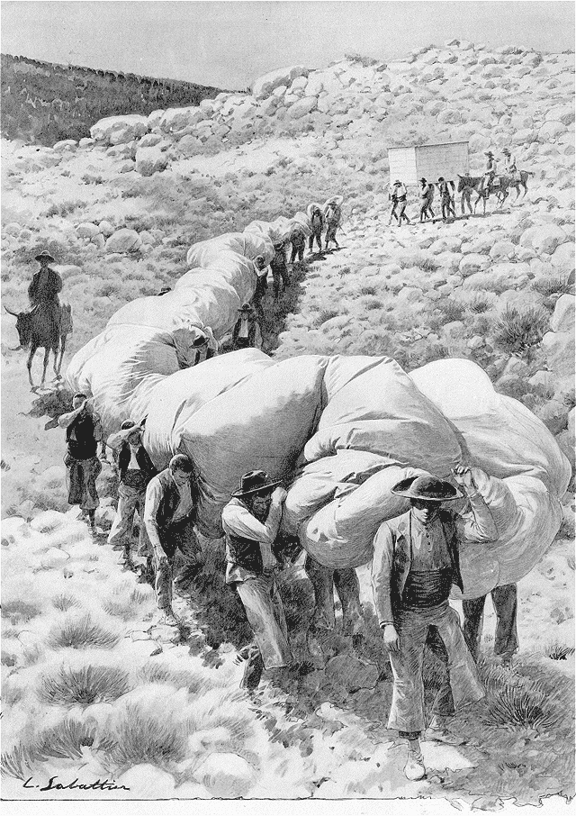 C'est donc avec une extrême surprise qu'on vit, pour la première fois, à la fin du mois de septembre dernier, des nuages de sauterelles s'abattre en Cochinchine. Notre gravure, reproduisant une photographie prise à Saïgon, montre les sauterelles reposées sur les arbres, en telle quantité que les feuilles disparaissent totalement et que les branches plient sous le poids des insectes au point de donner aux arbres l'aspect des variétés dites «pleureuses».