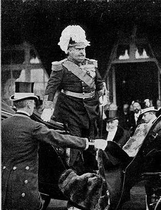 ![]() Le roi Carlos et le président Loubet se rendant au palais du quai d'Orsay. |