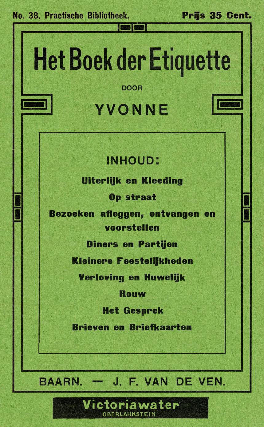 Een waarlijk beschaafd mensch neemt in den huiselijken kring dezelfde vormen en manieren in acht als daar buiten, immers goede manieren zijn geene uiterlijkheden, maar vormen een deel van ons wezen en komen uit ons hart en ons verstand voort. Daarom zal het een waarlijk beschaafde vrouw onmogelijk zijn 's morgens aan het ontbijt hare huisgenooten te vergasten op het leelijke schouwspel van papillotten of krulhaarspelden; om de zelfde reden zal de heer des huizes niet zonder jas of boord in de huiskamer verschijnen. Steeds moet uw uiterlijk zoo zijn, dat, zoo er een onverwacht bezoeker binnentreedt, gij hem zonder onrust of verlegenheid tegemoet kunt treden.