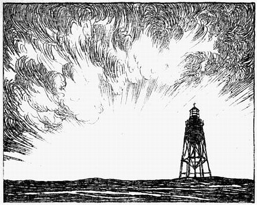 The flash that wheeling inland wakes his sleeping wife to prayer;