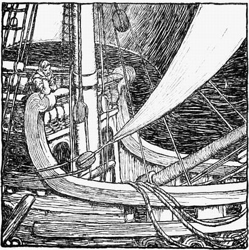 Our loins are battered ’neath us by the swinging, smoking seas.