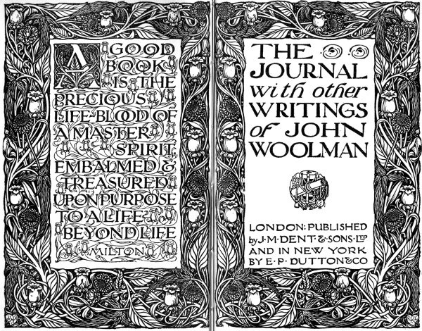 The present edition, while making no claim to critical completeness, presents the main accessible body of Woolman's writings. Here is a well of purest water, "dug deep," to use the Quaker phrase. The mere limpidity of the water will be joy enough for some: others gazing into it may feel that they see down to the proverbial Truth—the very origin of things, the foundations of the moral universe.