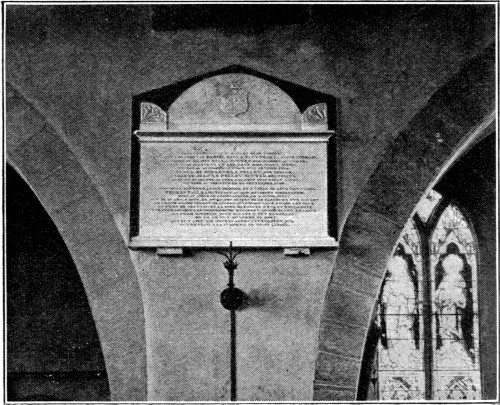 "The accompanying photograph of a mural tablet in St. Sampson's Church, Guernsey, the inscription on which is in French, brings the surgical skill of to-day into striking contrast with that of a hundred years ago. For the benefit of those who do not care to try their eyesight in reading the small type, or who do not understand French, I have translated the latter and more interesting part of the inscription into English, as follows: 'This monument is erected to their memory, and also to that of their eldest son, Thomas Falla, Lieutenant of the 12th Regiment of Infantry, who died at the siege of Seringapatam, April 6th, 1799, aged eighteen years, six months, twenty-five days, as the result of a wound of a solid cannon ball weighing twenty-six pounds, which had lodged between the two bones of one of his thighs. The said wound having become considerably inflamed, the surgeon of the regiment, after he had examined the injury, was unaware that the ball was enclosed in it, and it was only after his death, which took place six hours after the event, that it was extracted, to the surprise of the whole Army.' The solid cannon ball referred to, of twenty-six pounds in weight, must have been five and three-quarter inches in diameter; it is astounding to contemplate that the regimental surgeon was unable to detect the presence of this huge mass of iron in the unfortunate officer's thigh."—Mr. Arthur D. Moullin, "Cintra," Swanage, Dorset.