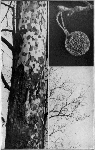 Bark is a distinguishing character of many trees—of others it is confusing. The sycamore, shedding bark in sheets from its limbs, exposes pale, smooth under bark. The tree is recognizable by its mottled appearance winter or summer. The corky ridges on limbs of sweet gum and [Pg xvi] bur oak are easily remembered traits. The peculiar horizontal peeling of bark on birches designates most of the genus. The prussic-acid taste of a twig sets the cherry tribe apart. The familiar aromatic taste of the green twigs of sassafras is its best winter character; the mitten-shaped leaves distinguish it in summer.