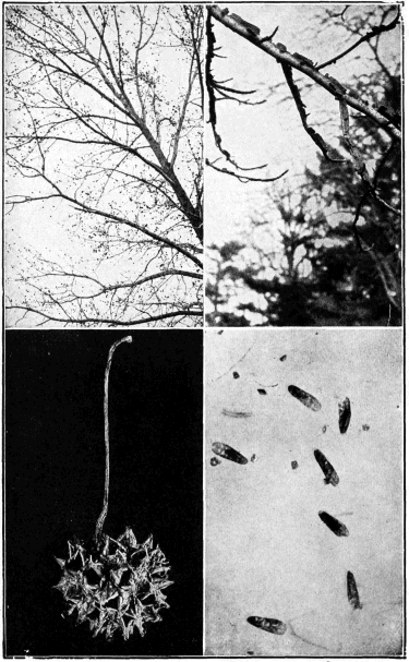 The characters to note in studying trees are: leaves, flowers, fruits, bark, buds, bud arrangement, leaf scars, and tree form. The season of the year determines which features are most prominent. Buds and leaf scars are the most unvarying of tree characters. In winter these traits and the tree frame are most plainly revealed. Winter often exhibits tree fruits on or under the tree, and dead-leaf studies are very satisfactory. Leaf arrangement may be made out at any season, for leaf scars tell this story after the leaves fall.
