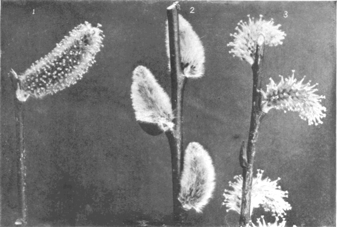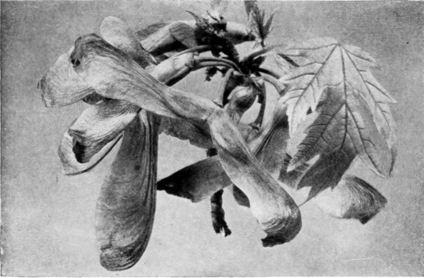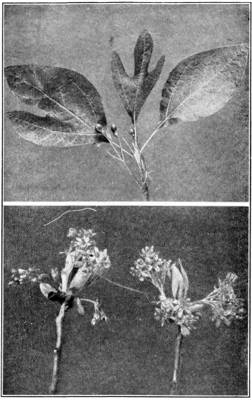 Many leaves are rosy, or lilac tinted, when they open—the waxy granules of their precious "leaf green" screened by these colored pigments from the full glare of the sun. Some leaves have wool or silk growing like the pile of velvet on their surfaces. These hairs are protective also. They shrivel or blow away when the leaf comes to its full development. Occasionally a species retains the down on the lower surface of its leaves, or, oftener, merely in the angles of its veins.