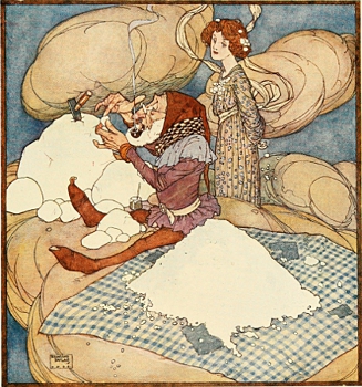 One day she heard some of the maids talking together. They were speaking of the Wise Man, the Magician, who lived in the dark cave on the side of the hill, and could do the most wonderful things. In fact, they said, there was hardly anything he couldn't do; you had only to tell him what you wanted most and he could manage it for you.