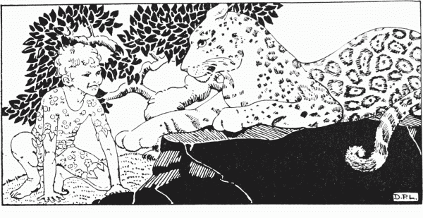 He was out of her arms and dressed in a very few moments, moving very softly lest she should wake; but though he knew[159] that if she awoke she would not let him go, he could not leave her without saying good-bye. And so coming near he stooped over her and very gently kissed her soft cheek and sweet mouth and murmured, "Good-bye, sweet mother." Then, very cautiously, like a shy, little wild animal he stole out of the cavern. Once outside, in the early morning light, he started running as fast as he could, jumping from stone to stone in the rough places, and scrambling through the dew-laden bushes and creepers, until, hot and panting, he arrived down at the very foot of the hill.