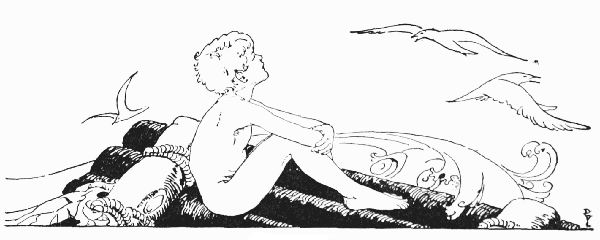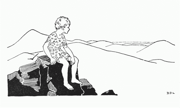 Arrived at the cliff, he began walking along the edge, and in about an hour's time came to the end of it, for there it sloped down to the water, and before him, far as he could see, there was a wide, shingled beach with low sand-hills behind it. With a shout of joy he ran down to the margin, and the rest of that day he spent dabbling in the water, gathering beautiful shells and seaweed and strangely-painted pebbles into heaps, then going on and on again, still picking up more beautiful riffraff on the margin, only to leave it all behind him at last. Never had he spent a happier day, and when it came to an end he found a sheltered spot not far from the sea, so that when he woke in the night he would still hear the deep, low murmur of the waves on the beach.
