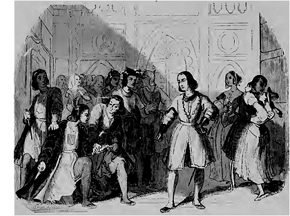 «Tu es là! là au milieu des eaux, femme maudite! Oh' pourquoi cette nuit n'est-elle pas éternelle! pourquoi ne peut-elle ressentir autant de tortures qu'elle m'en a fait souffrir depuis deux mois!»