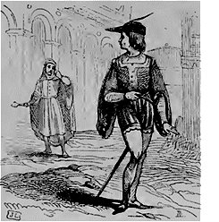 Je ne pourrais affirmer ni nier que Marguerite crût aux sorciers et aux superstitions de ce genre, et qu'elle les redoutât. Il est pourtant probable qu'elle n'était point incrédule à cet égard, car lorsqu'une erreur est généralement accréditée, il n'y a qu'un bien petit nombre d'esprits que la sagacité d'observation et le mépris de l'autorité défendent de la déviation commune. Il est certain qu'elle aussi elle se mêlait à la foule dans cette solennité populaire, et qu'elle avait coutume de prendre un délassement honnête avec ses compagnes, se promenant avec elles toute la nuit. Le vil Ramengo crut que la présence de Marguerite en ce lieu était favorable à ses projets, et il se tînt constamment auprès de la femme de Pusterla, étroitement attaché à ses pas comme un remords.