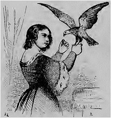 Je ne tardai pas à découvrir la femme de cet être singulier: une créature grasse et blafarde, emmitouflée dans toutes sortes de vêtements noirs, bizarrement surannés. Elle cachait sa tête, constamment penchée vers un prayer book, sous un curieux assemblage de bandelettes en crêpe noir et en mousseline blanche, que surmontait un chapeau de taffetas dont la calotte en dôme et la passe en éventail comportaient toute une série de recherches archéologiques.