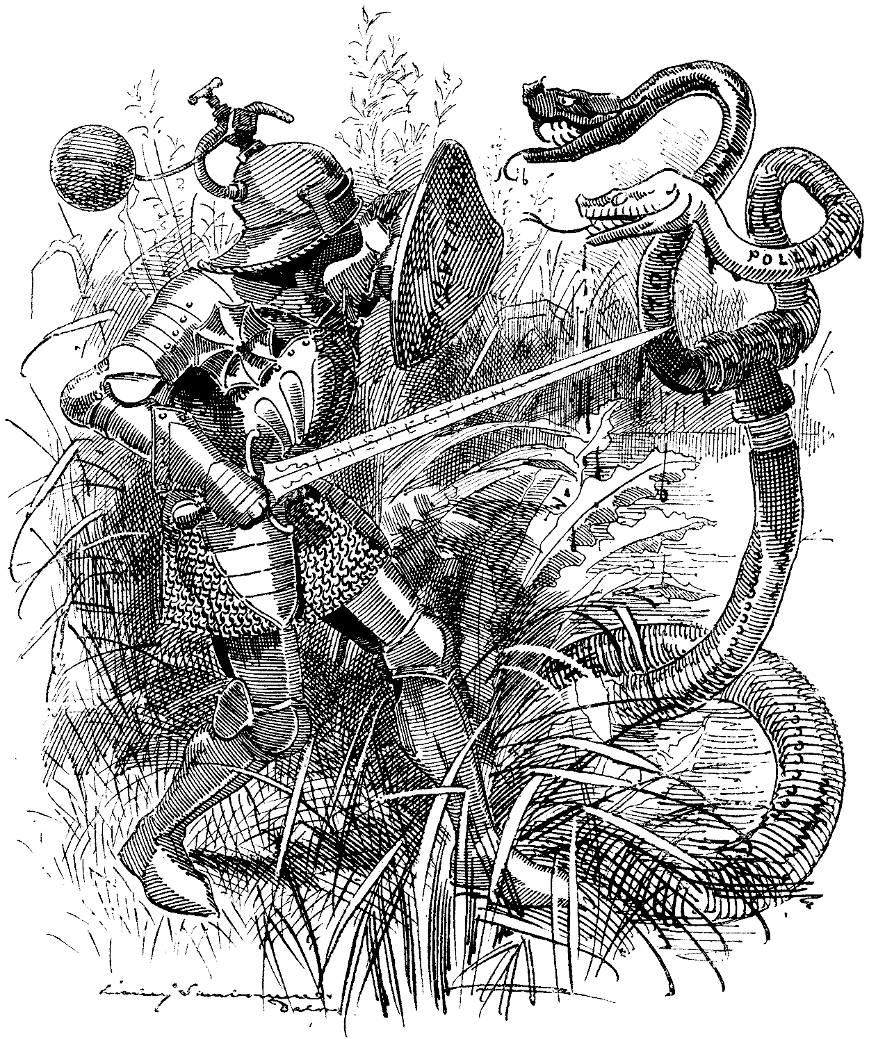 "Yes," said the Financial Secretary to the War Office with same vibrating, tinny intonation, "by my halidome (so to speak) it's me: and precious hot and generally uncomfortable it is, too, I can tell you. The things don't fit, you see; borrowed them from the Tower; some a size too large, which is bad; others a turn too small, which, considering they are made in metal, is worse."