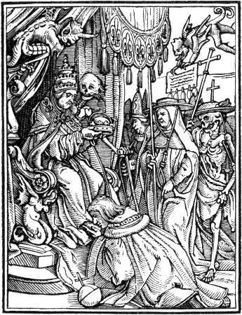 [66] More on the subject of the Lubeck Dance of Death may be found in 1. An anonymous work, which has on the last leaf, “Dodendantz, anno domini MCCCCXCVI. Lubeck.” 2. “De Dodendantz fan Kaspar Scheit, na der utgave fan, 1558, unde de Lubecker fan, 1463.” This is a poem of four sheets in small 8vo. without mention of the place where printed. 3. Some account of this painting by Ludwig Suhl. Lubeck, 1783, 4to. 4. A poem, in rhyme, with wood-cuts, on 34 leaves, in 8vo. It is fully described from the Helms. library in Brun’s Beitrage zu krit. Bearb. alter handschr. p. 321 et seq. 5. Jacob à Mellen Grundliche Nachbricht von Lubeck, 1713, 8vo. p. 84. 6. Schlott Lubikischers Todtentantz. 1701. 8vo. 7. Berkenmeyer, le curieux antiquaire, 8vo. p. 530; and, 8. Nugent’s Travels, i. 102. 8vo.