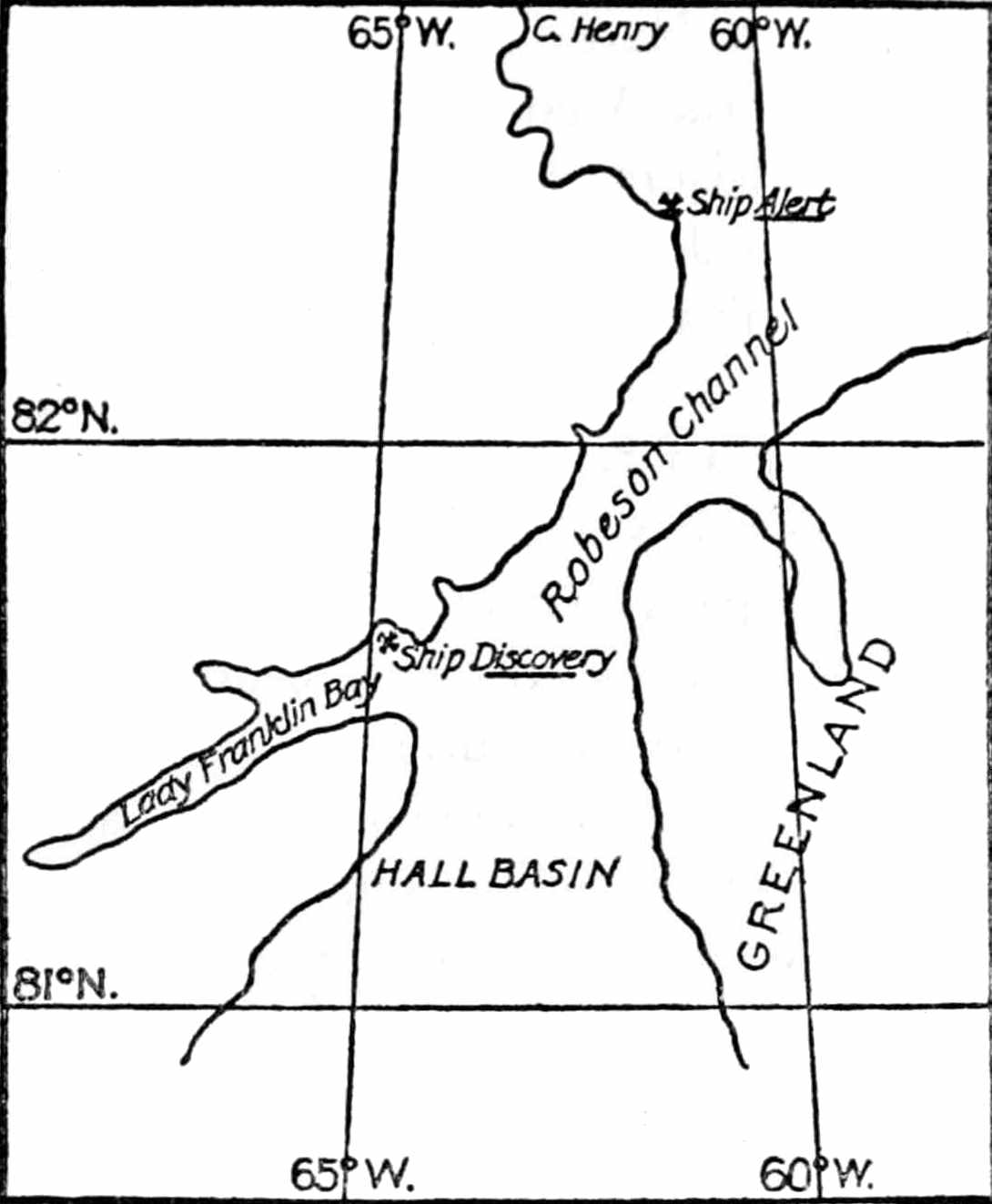 [27] The discoveries of Lieutenant (now General) Greely around Lake Hazen, of Lockwood and Brainard in northwest Greenland and Hazen Land, prove that the route followed was via Greely Fiord, past Lake Hazen, across Kennedy Channel, over Hall Land, probably through the upper valley of Nordenskiöld Inlet, and along the shores of Peary Channel to Denmark Fiord.