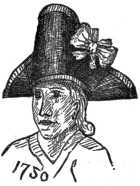 The style of hat of this period (1731) had the sides of the brim turned up, with a front of an easy curl, which,9 nearly resembling a cap-visor, made it in shape somewhat between a hat and cap; this seems to have been the first approach toward the "cocked" or three-cornered hat afterwards so extensively used, and to Americans the most familiar of past styles, from its being a fashion of the period of the Revolution, by which it became the prominent part of an historical costume. The arbitrary law before alluded to was afterwards modified, but an uncomfortable restriction continued to be enforced upon all manufactures, for in the year 1750 the English Parliament, among other unjust acts, enacted a law forbidding exportation of hats from one colony to another and allowing no hatter to have more than two apprentices at one time, "because the colonists, if let alone, would soon supply the whole world with hats."