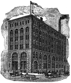 Messrs. Brigham, Hopkins & Co., while possessing a large business, have the pleasure of conducting it in a spacious building, whose architectural design is one of the handsomest of its kind in the country, and whose conveniences for the successful prosecution of their business cannot be excelled. A business coming from one of its pioneers through a direct succession of firms gives to Brigham, Hopkins & Co. a natural pride in such an inheritance, and brings also a pleasure in being able to trace its progress from its origin, showing how this branch of manufacture was at an early day brought to an admirable condition of prosperity, afterwards to pass through a period of almost total decay, then again to attain a development that entitles it to rank with any of the successful and prominent industries of the city.