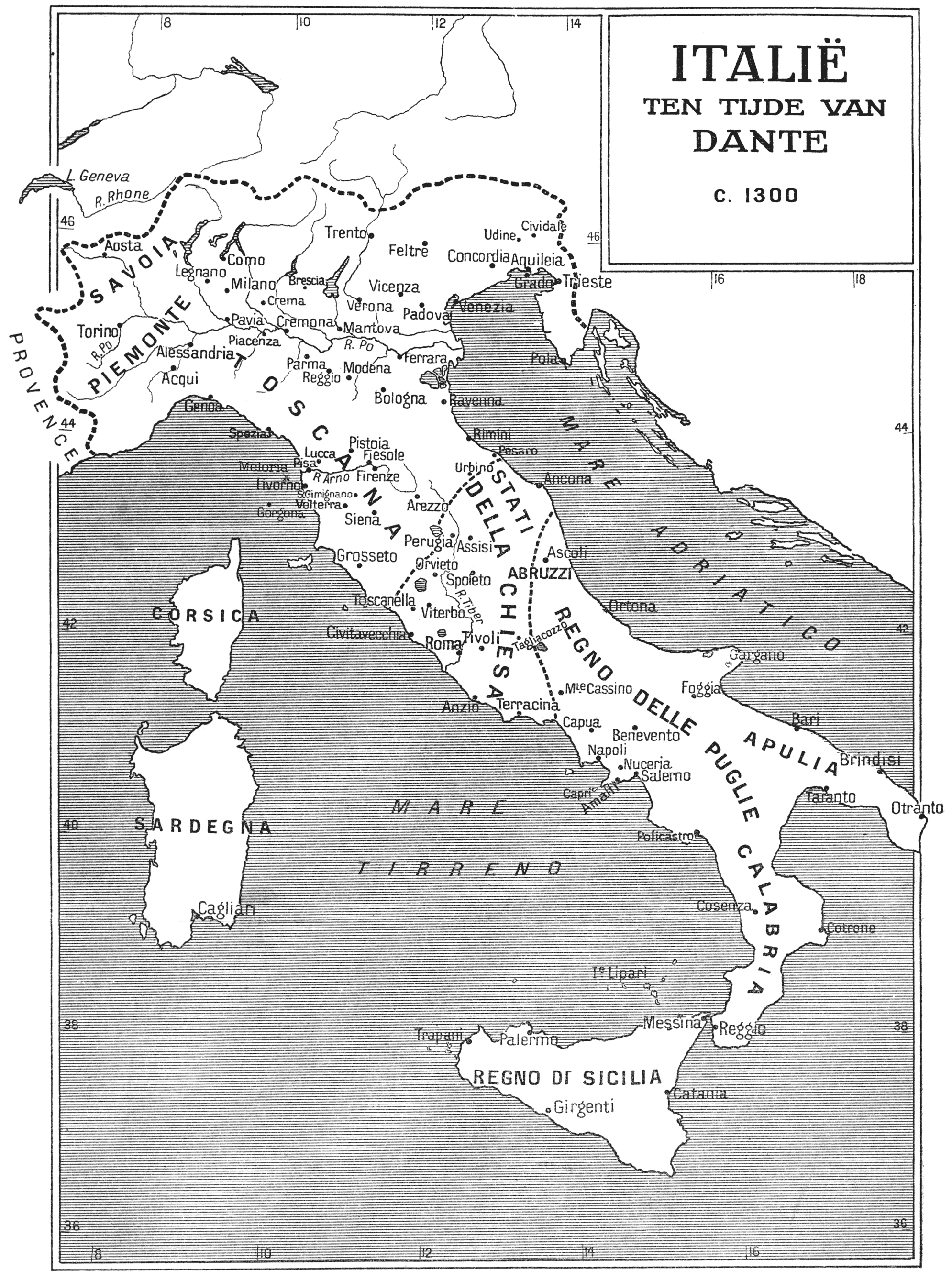 Een volledige lijst van de talrijke schrijvers over de geschiedenis, kunst en literatuur van Italië in het tijdvak, dat hier behandeld wordt, zou meer ruimte eischen, dan ik kan missen en indien ook de titels van hun werken werden opgenoemd, zou een groot aantal bladzijden noodig zijn. Ik zal dus slechts eenige oude en moderne bekenden vermelden, aan wie ik bijzonderen dank verschuldigd ben.
