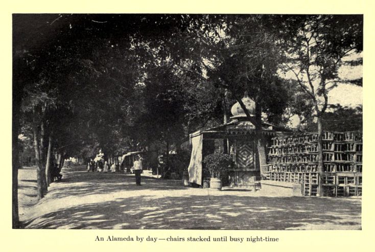 There is one stroll in Saragossa that I would commend to the wanderer who finds pleasure in gaining elevations whence he may look down, as it were, on the world. It is out along the Canal Imperial, past the swollen-paunched statue of its sponsor Pignatelli, and across the Huerva; then winding lazily southwest and upward the stroller comes suddenly out on the crown of a bald hillock. There, below him in its flat valley, spreads all Saragossa, far enough away to lose the crassness of detail, yet distinct, the two finished towers of the Pilar rising above it like minarets, the whole girded by the green huerta, and beyond and all around the desert in gashed and gnarled hills like the Libyan range of another continent. Here I lounged until the setting sun, peering over my shoulder, cast the radiant flush of evening on the city below, which gradually fading away was at length effaced in the night, its sounds mingling together in a sort of music that drifted up to me long after the scene itself had wholly disappeared.