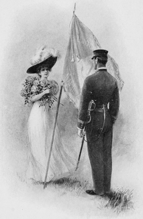 Helen did not remain alone for many moments, but for an instant a pretty picture was presented on the drill grounds. A beautiful girl, carrying in one arm a huge bunch of red roses, and in the other steadying the glorious colors of the Naval Academy, standing alone, facing seven hundred blue-coated statues. But in a moment another color guard approached, the color guard of the company judged to have won the flag. And with it marched the captain of the company, Cadet Lieutenant Drake.