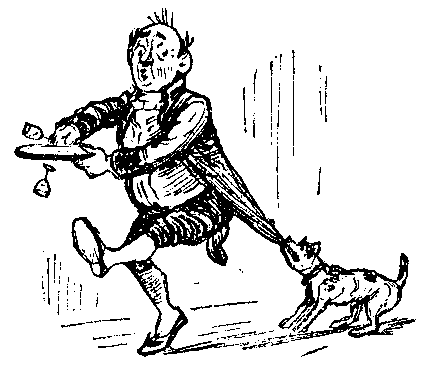 C. Let 'em sit! They'll see you and me sittin' all the evenin', strummin' and blowin' like nigger slaves, and a lot they'll care! Don't you make no mistake, young Pianner, there ain't no sense in doin' more than you're obliged—you'll get no credit for it, d'ye see? And don't keep that programme all to yourself. Ah, one Swedish, one Sir Roger, and a bloomin' Cotilliong—they'll take two hours alone! We shan't work this job off much before one, you see if we do. (To Hostess.) Commence now? By all means, Madam. Send us a little refreshment? Thank you, Madam, we shall be exceedingly obliged to you. (The refreshment arrives.) Here's stuff to put liveliness in us, Mate—Leminade!
