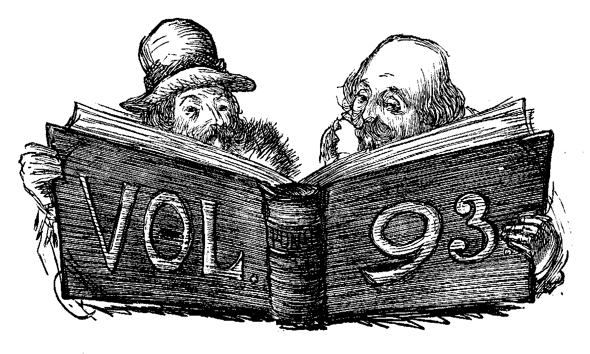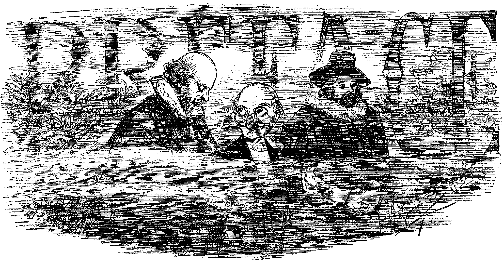 As Mr. Punch reluctantly turned his back upon Elysium, he left the two Illustrious Shades, prone side by side and cheek by jowl upon an asphodel bank, eagerly and diligently perusing his