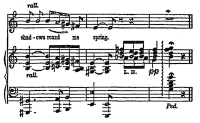 Gabrielle, as though in a trance, felt his caressing hands; they seemed shadow hands as his burning words crept into her ears. She heard the winds sigh outside in the mountain palms. She and he were alone.