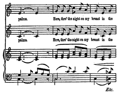 “What a beautiful voice you’ve got!” said he, as she dipped her paddle in perfect tempo to some wild melody that she sang in a minor key.