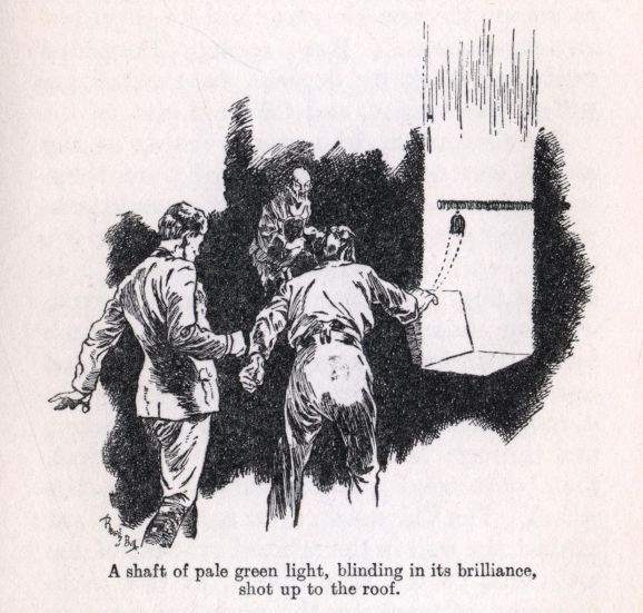 A SHAFT OF PALE GREEN LIGHT, BLINDING IN ITS BRILLIANCE, SHOT UP TO THE ROOF