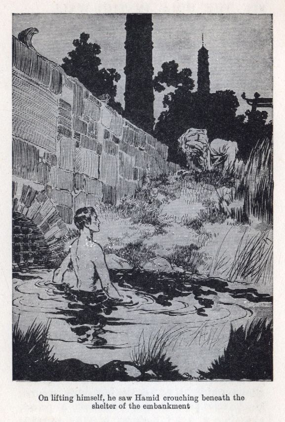 ON LIFTING HIMSELF, HE SAW HAMID CROUCHING BENEATH THE SHELTER OF THE EMBANKMENT