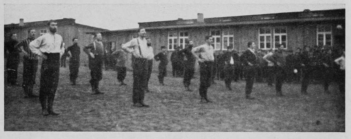 By[3] this time the big boat had been made fast to a long railroad pier and as we crossed the gang plank we made out in the bluish haze of an arc lamp, a line of soldiers who seemed to be herding the passengers into what appeared to be a long wooden shed newly built. Crowds are the same the world over, so no one held back, all pushing, luggage and passports in hand, into the frame structure built, I realized, for purposes of military inspection.