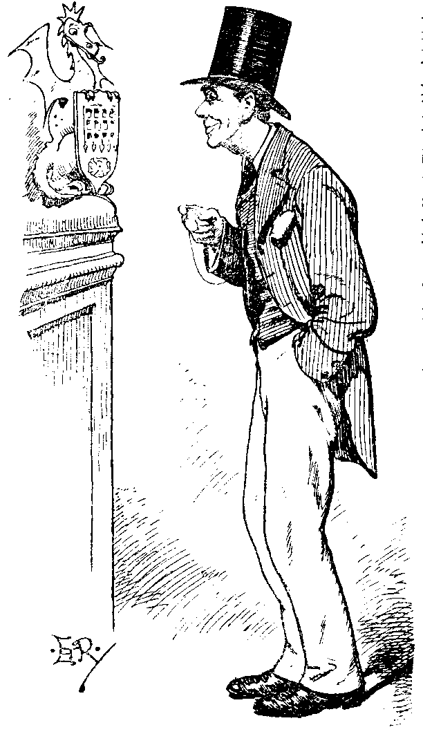 On the benches behind sat only Tomlinson, who sometimes wishes Prince Arthur had a little more of Silomio's go; Knatchbull-Hugessen who doesn't think the Knight is quite the model of a country gentleman, but likes to hear him shout at the Government; and Cap'en Tommy Bowles, wearing his best Sunday ducks in honour of a sultry day that reminds him faintly of breathless moments spent in the Forties in the Bight of Benin.