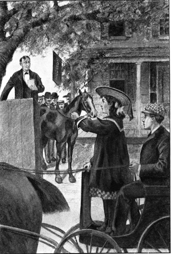 "I'm going to put the saddle in the phaeton along with the baskets when we drive to the 'meadow.' The 'Bee' people fixed the bars to it so nicely, we can drive along the road till we come to the field and then through the bar-way into it. I'll take Portia out of the shafts and saddle her, or the boys will do it for me. Then all the girls that wish can take a ride, turn and turn about. It will add ever so much to our fun—everybody I know simply loves and envies me my darling 'calico' pony! I'll come back for you first, though, mother and father, for you must be there. A picnic, or anything nice, wouldn't seem perfect without you two. Dear Mr. Winters is sure to come. He said so and he's going to bring—My! I almost let the cat out of the bag!"