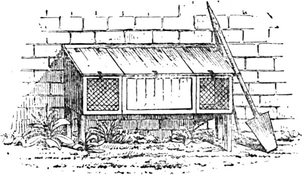 Having got all your ferrets, the next question is how to keep them. I have tried scores of different houses for them. I have kept them in a big roomy shed, in tubs, in boxes, and in pits in the ground; but now I always use a box with three compartments. The left-hand compartment should be the smallest and filled with wheat-straw well packed in, with a small round hole a little way up the division, for the ferrets to use as a door. The middle compartment should be empty and have the floor and front made of wire netting, to allow light, ventilation and drainage. The third compartment should be entered from the middle one by a hole in the[Pg 16] division, but should have a strong tin tray fitting over the floor of it covered with sand, which can be drawn out and cleaned; the front of this compartment, too, should be wire netting. The sand tray should be removed and cleaned every day, even Sundays. The house should stand on legs about a foot high. Each compartment should have a separate lid, and the little entrance holes through the divisions should have a slide to shut them, so that any one division can be opened without all the ferrets rushing out. The bed should be changed once a week. Such a box as I have shown is large enough for ten ferrets. For a mother with a family a much smaller box will suffice, but it should be made on the same plan. For bedding use only wheat-straw. Either barley-straw or hay will give ferrets mange in a few days.