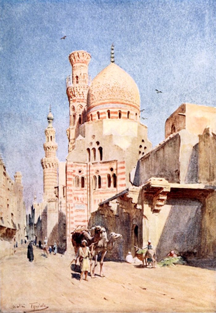 L'aquarelle ci-contre représente les deux minarets de El Muaiyad qui s'élèvent si gracieusement au-dessus de cette porte de tragique mémoire. Les maisons avoisinantes cachent la porte elle-même, qui a tenté les crayons ou les pinceaux de bien des artistes. L'espace qui l'entoure est trop restreint, et après tout il est peut-être préférable que le lieu sinistre d'où s'élèvent ces ravissants minarets reste caché.