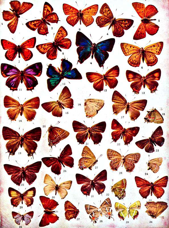 | 18. Hylephila phylæus, Drury, ♂. | 38. Phycanassa howardi, Skinner, ♂. |