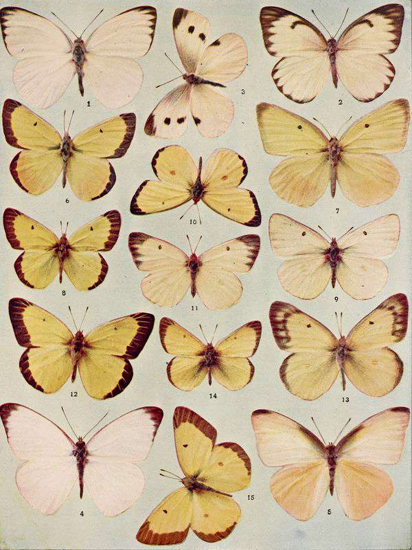 | 8. Lerema accius, Smith and Abbot, ♂. | 18. Colias eurytheme, Boisduval, ♁, |