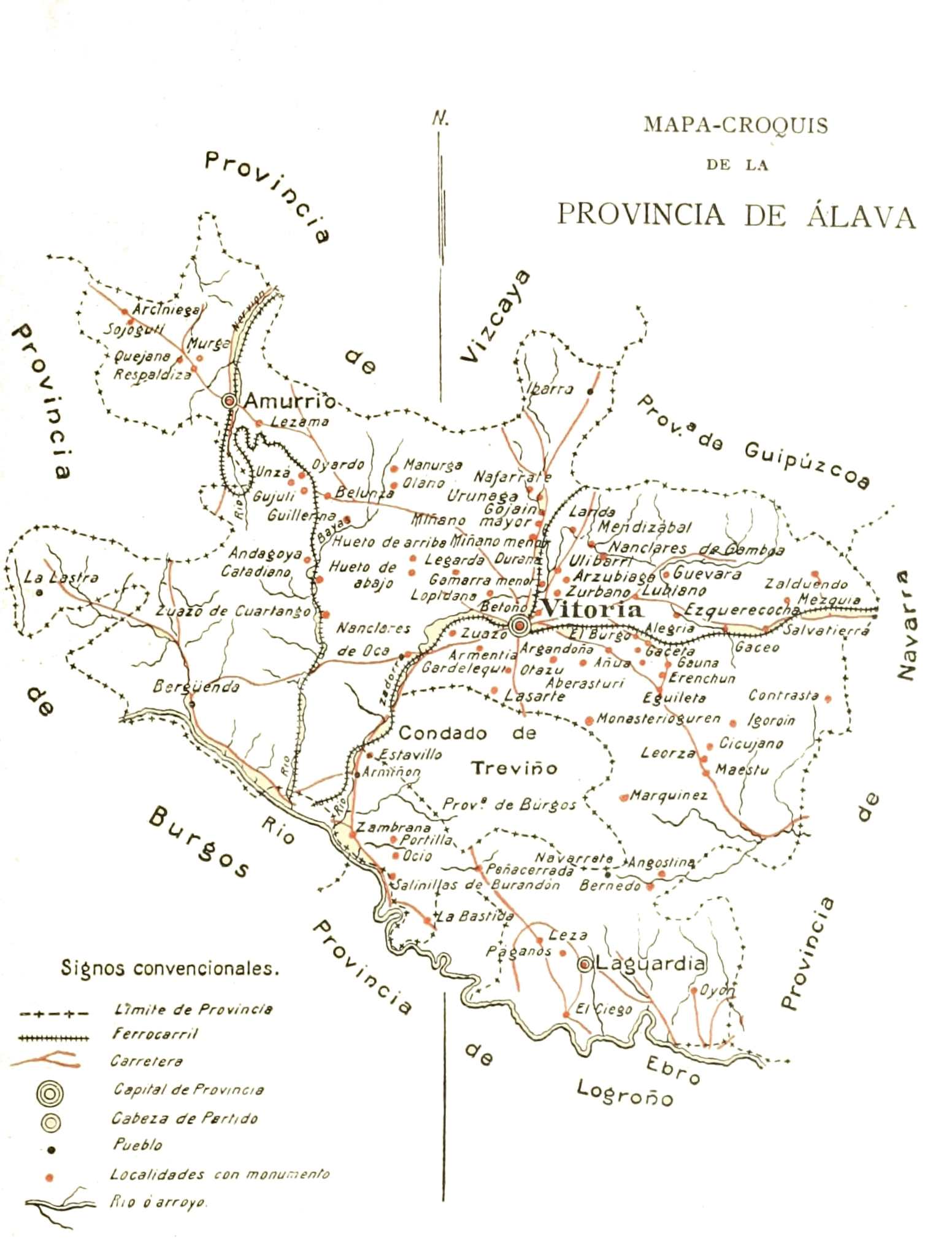 La provincia de Álava es pobre de extensión, pero riquísima en poblados. En sus 3.044 kilómetros cuadrados se asientan con la capital 85 villas y 348 aldeas, en muchas de las cuales hay algún testimonio de arqueología.