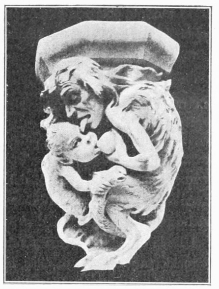 Ambas, como arañadas en el bloque de un gran peñasco, despiertan en el visitante honda emoción, y su ingenuidad ruda y toscos trazos nos hablan de hombres fabulosos, gigantescos, que cubiertos de pieles y los cabellos en desorden, penetran en la cueva dando gritos y esgrimiendo las hachas de pedernal.