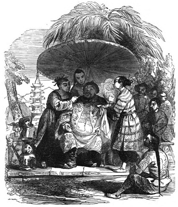 Deze overwinning bragt ons echter weinig voordeel aan; wij verloren een kameel en wij wonnen een paard, doch het verdient opmerking, dat toen wij in het dorp terugkwamen, de man voor den kameel wilde betaald worden. Ik weigerde dit, en de zaak werd voor den Chineschen regter van die plaats gebragt, of gelijk wij zouden zeggen voor den vrederegter. Om hem regt te doen, hij handelde zeer voorzigtig en onpartijdig, en na beide partijen gehoord te hebben, vroeg hij ernstig aan den Chinees, die met mij medegegaan was, om den kameel te koopen, wiens knecht hij was. "Ik ben geen knecht," zeide deze, "maar ik ging met den vreemdeling mede."—"Op wiens verzoek!" vraagde de regter.—"Op des vreemdelings verzoek," was het antwoord.—"Welnu," zeide de regter, "dan waart gij in dienst van den vreemdeling te dier tijd, en daar de kameel aan iemand in zijne dienst is ter hand gesteld, is zij aan hem ter hand gesteld, en hij moet hem betalen."