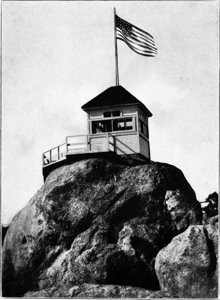 Having thus protected his food supply, he sent the dog around the sheep to bunch them up and started them up the mountainside. The sheep, frightened by the smoke and approaching fire, moved rapidly, and inside of half an hour the boy had them all bedded down on a great bare granite field in the middle of a little boulder-strewn valley where, ages ago, some slipping, sliding glacier had smoothed and polished the surface of the rocks until they were like some gigantic table top. The valley was far above timber and the sheep safe from fire.