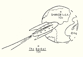 FUTURIA FANTASIA IS PUBLISHED IRREGULARLY AND GESTATED AT THE DOW-JONES BUYING LEVEL OF TEN CENTS AN ISSUE. THE FIFTH ISSUE WILL BE SCARING YOU AROUND ABOUT HALLOWEEN—SEND YOUR DIME TO EDITOR BRADBURY AT #3054 1/2 W. 12th St. Los Angeles, Calif. CONTRIBUTIONS WILL BE HAPPILY FONDLED AND SEWED UP IN A GREEN VELVET SACK. ALL STORIES SUBMITTED MUST BE SHAVED AND IN THE COMPANY OF ADULT MARTIANS.