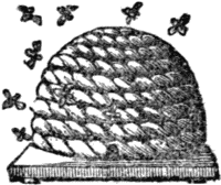 Bee Hives can be made with leather stems, as follows:—Cut a piece of wood to the shape and size required; wind and glue upon it the stems, beginning at the top, and finishing off at the bottom. To join the stems as you proceed, cut each end to an angle, so that they fit; join them with liquid glue, and tie a piece of thread round to hold them tightly together until the glue is dry. When the hive is completed, that portion of thread left visible can be cut off.