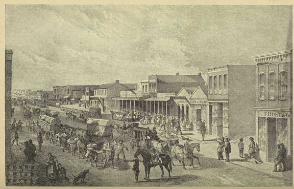 Now, commencing with the forties, there was nothing of great moment happened until the great freshet of '44, which was the largest flood that has been known in the Missouri, about the mouth of the Caw, in the last seventy-five years, and I think that there never has been in the history of the country as great a flood in the Missouri at[322] that point. In '46 the Mexican War came up, and produced quite a stir among the business men upon the west border of the Missouri, as at that time there was no Kansas and Nebraska, the whole country being called "the Indian Territory" west of the State of Missouri. The Santa Fé trade, by this time, had become a regular annual business, and men had learned how to outfit wagons and teams so as to carry large amounts of merchandise and Government stores from the Missouri River to Santa Fé, N. M. and when General Donathan organized his regiment of troops, by the authority of the Governor of the State of Missouri, to march to Santa Fé, N. M., he found no trouble, neither did the Government, in securing all the transportation necessary to meet any emergency that might arise, with a plain and well-beaten road the entire route that they had to travel, this road having been opened by the merchant-trains in previous years.