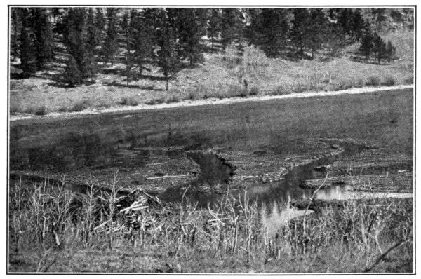 The regulation of stream-flow is important. There are only a few rainy days each year, and all the water that flows to the sea through river-channels falls during these few rainy days. The instant the water reaches the earth it is hurried away by gravity, and unless there are factors to delay this run-off, the rivers would naturally contain water only on the rainy days and for a[Pg 216] little while thereafter. A beaver dam and pond together form a factor of importance in the keeping of streams ever flowing. The pond is a reservoir which catches and retains some of the water coming into it during rainy days and which delays the water-flow through it. A beaver pond is a leaky reservoir, a kind of spring as it were, and if stored full during rainy days the leakage from it will help maintain stream-flow below during the dry weather. Beaver works thus tend to distribute to streams a moderate quantity of water each day. In other words they spread out or distribute the water of the few rainy days through all the days of the year.